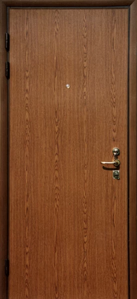 Ламинат - это доска из ДВП толщиной 4-5 мм с четырехслойным покрытием. Визуально он не отличается от натуральной древесины. Рисунок ламинированной доски может быть гладким и имитировать древесный спил или рельефным, имитирующим структуру дерева. Разнообразная цветовая гамма этого материала позволяет изготовить дверь, которая будет отлично смотреться в интерьере как квартиры, так и офиса.