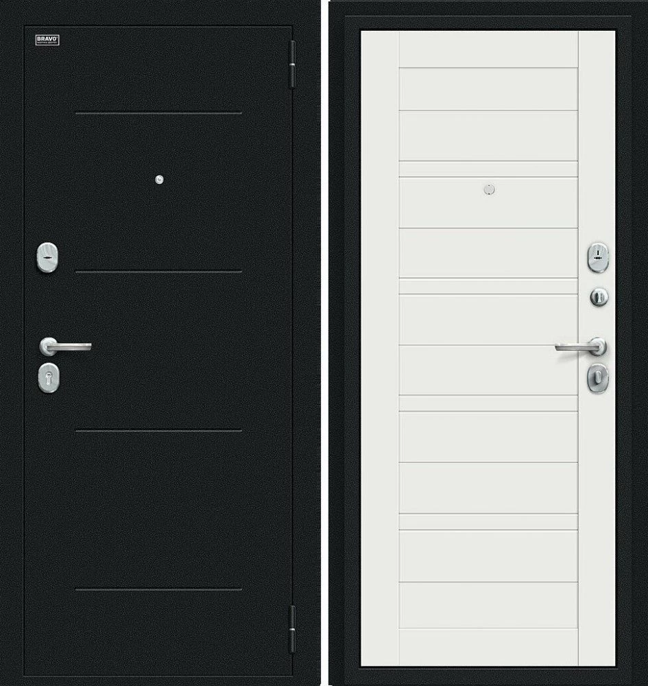Надежная входная Дверь Браво Сити Kale Букле черное/Off-white премиум класса по цене 36 541 руб. Большая толщина стали защитит от проникновения в ваш дом, квартиру или коттедж. Используется очень качественная фурнитура: замки, цилиндры, ручки, защелки. Покрытие и отделка двери изготовлено под внимательным контролем производителя. Дверь имеет долгий срок службы и гарантию.