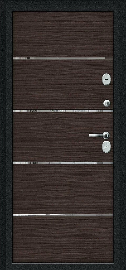 Надежная входная Входная дверь Thermo Лайн Букле черное/Wenge Veralinga BR4579 премиум класса по цене 48 712 руб. Большая толщина стали защитит от проникновения в ваш дом, квартиру или коттедж. Используется очень качественная фурнитура: замки, цилиндры, ручки, защелки. Покрытие и отделка двери изготовлено под внимательным контролем производителя. Дверь имеет долгий срок службы и гарантию.